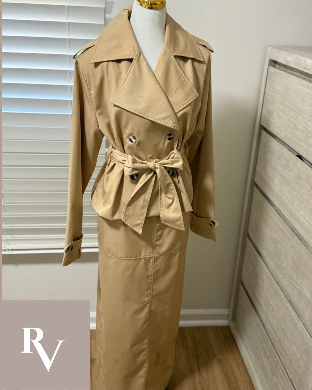 Un conjunto sastre en tono caqui profundo, pensado para la mujer que camina con propósito y gobierna su día con serenidad.